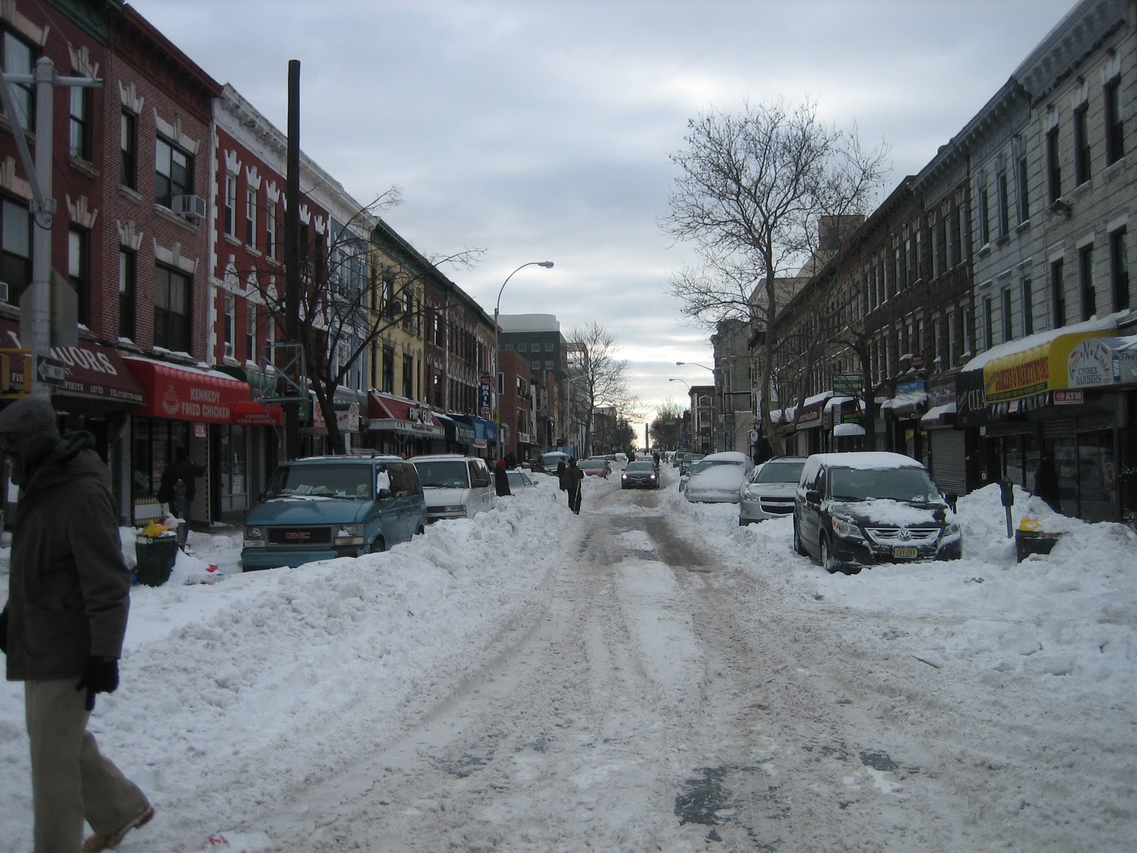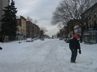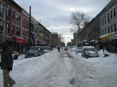 Admittedly, a good amount of the snow you see on these streets was cleared away today, so this intersection doesn't look nearly as, well, apocalyptic as it did both yesterday and the day before. Nevertheless, there are still many side streets that, as of this morning anyway, were still buried in snow. This is just the tip of the iceberg.